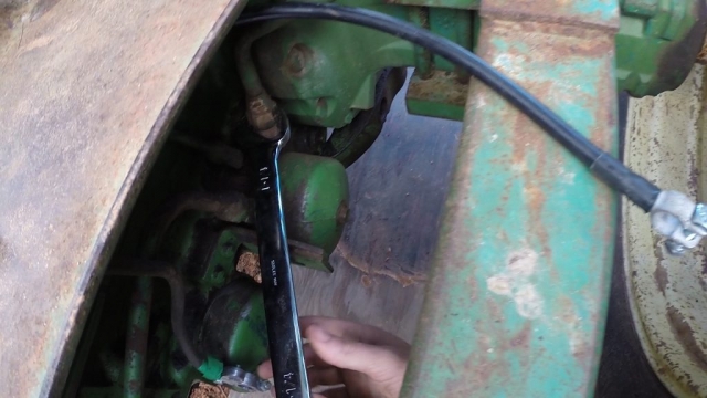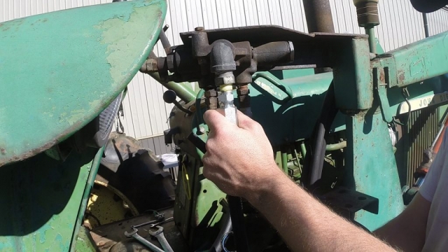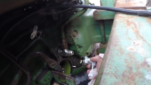 - Thread the new fitting into the tractor ensuring that the fitting is aligned with the old line and is tight enough to seal.