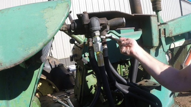 I bought my first tractor several years ago, this is a repost onto our new site for farming. We bought an early model 1968 John Deere 3020 tractor with the power shift transmission. The tractor came with a front end loader that had its hydraulic lines plugged into the rear ports. The bonus is that it has a front end loader the bad side is that if I want to run any attachment that has hydraulics I cant, without unplugging the loader at least. Since this is an early model JD 3020 there is no power beyond block which would be a pretty simple way to get the front end loader off of the rear hydraulics. So I reached out into a few internet forums and found some really helpful people to help me with this project. If it wasn’t for the people at Haytalk.com and yesterdaystractors.com I would not be able to write this instructable. A special thanks to “Tx Jim” for getting me started and answering questions. There is not a lot of documentation on doing this specifically on the PowerShift Transmission so I thought I would put the whole project here.