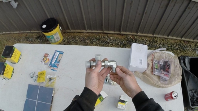 - Take the new 90 degree fitting and thread it onto the end of the new “T”.